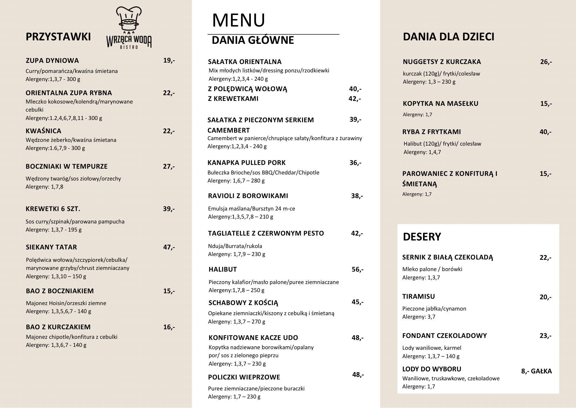 | Poniedziałek | zamknięte